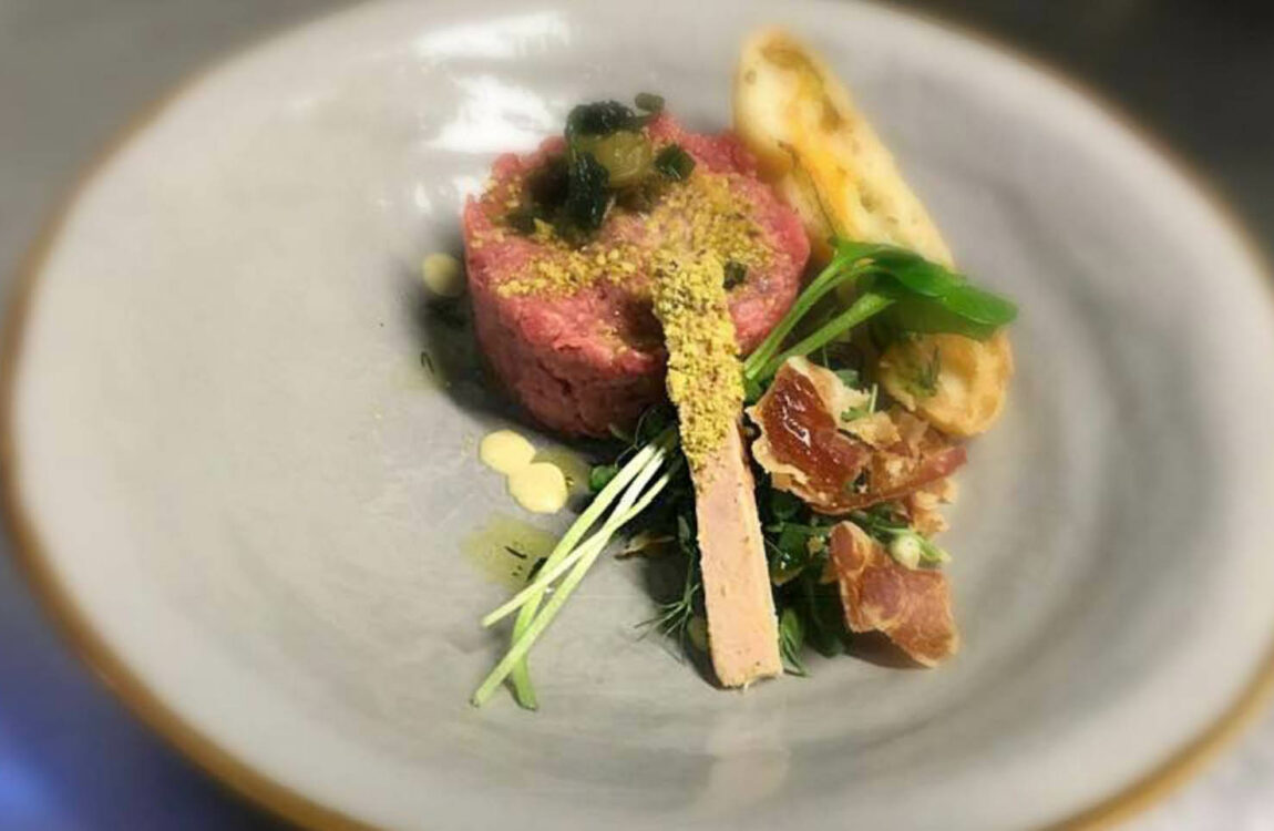 Tartaar van gepekeld Maremaanse chianinarund “Reale”, fritto van prei, gekonfijte knoflook